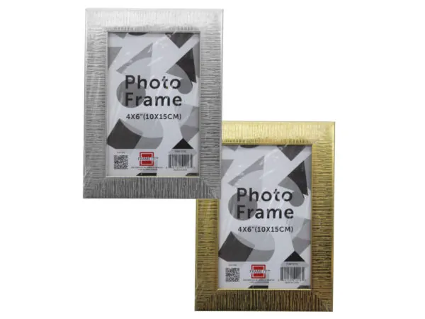 Enhance your favorite memories with this Elegant Gold 4x6 Photo Frame. Its sleek and lightweight design allows for versatile display options; you can showcase it horizontally on a flat surface with the attached stand or hang it vertically on a wall using the included hook. Ideal for creating a stunning photo wall or adding a touch of elegance to any room, this frame is perfect for your living room, bedroom, office, or dorm.