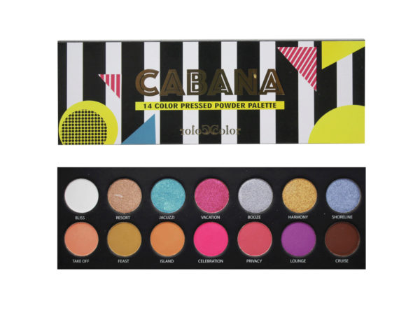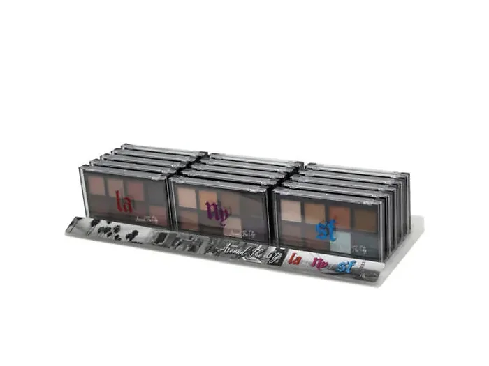 Each palette is securely sealed and presented within a countertop display, featuring 18 palettes total with 6 of each city’s inspired colors.
