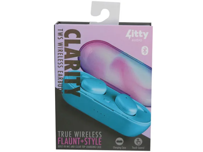 Clarity Blue True Wireless Earbuds with Carrying Case Hard Box