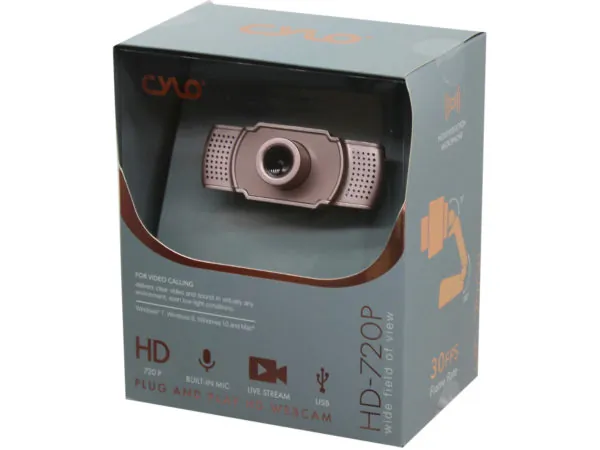 The CYLO 720P Premium Webcam is your go-to solution for high-quality video conferencing and streaming. With its elegant silver metallic finish, this webcam not only performs exceptionally but also adds a touch of style to your setup.