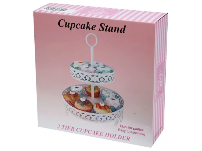 Introducing the Charmed 2-Tier Cupcake Stand, a versatile and stylish addition to your party and kitchen supplies. Whether you are hosting a birthday party, wedding, or any other special occasion, this cupcake stand is the perfect way to display your delicious cupcakes in a visually appealing way. Crafted with high-quality metal, the Charmed 2-Tier Cupcake Stand is durable and long lasting, making it a valuable investment for any event planner, baker, or home cook. The stand is designed to hold 10-12 cupcakes, ensuring enough space for all of your sweet treats. The stand's two-tier design adds an elegant touch to any occasion, while its neutral color makes it versatile enough to complement any party theme or decor. The Charmed 2-Tier Cupcake Stand is also easy to assemble and disassemble, making it a convenient option for those on-the-go. Not only is this cupcake stand functional and visually appealing, but it is also easy to clean and maintain. Simply wipe it down with a damp cloth after use and store it away until your next event. Measures 9.5" x 12" when assembled.