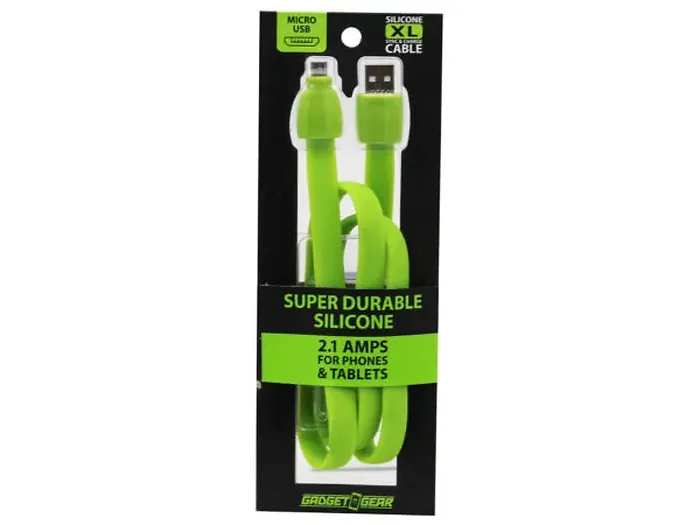 Experience fast and reliable charging with the Gadget Gear XL Silicone Micro USB Cable. Designed for optimal durability, this cable provides 2.1 amps of power, ensuring your devices charge quickly and efficiently. Its silicone exterior protects against wear and tear, while the 6-foot length gives you the freedom to use your devices while they charge.