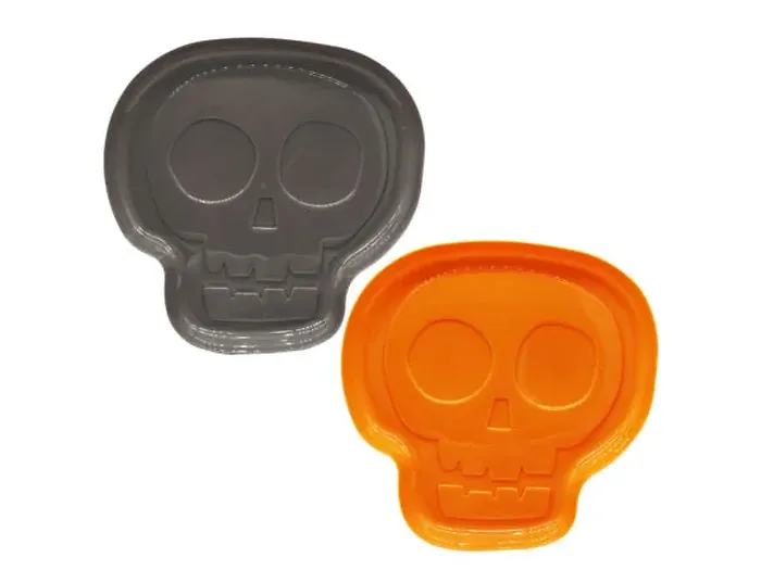Elevate your party experience with the 12-inch assorted plastic skull serving tray. Perfect for Halloween parties, themed events, or any spooky gathering, this tray adds a touch of fun and creativity to your serving needs. Made from durable plastic, it is easy to clean and reusable, ensuring your celebrations are both stylish and practical.
