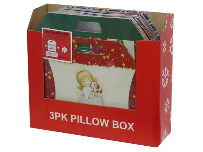3 Pack Christmas Themed Pillow Box Gift Boxes - Assorted Sizes