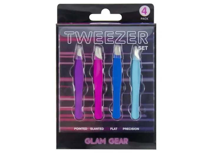 Glam Gear 4-Piece Assorted Tweezer Set with Colorful Handles