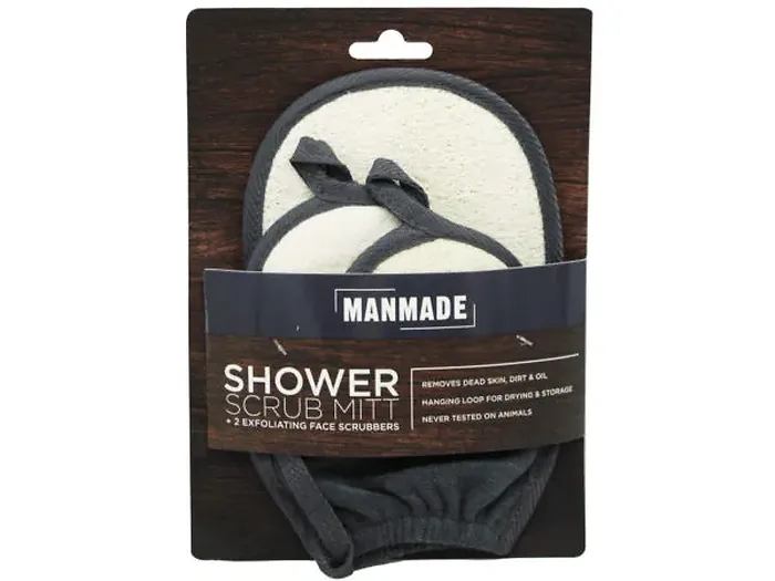 Enhance your bathing experience with the 3-Pack Iron Grey Shower Scrub Mitt and Facial Pads Set. Crafted from high-quality materials, this set features a fingerless mitt and two facial scrubbers that ensure an exceptional grip while providing effective scrubbing action.