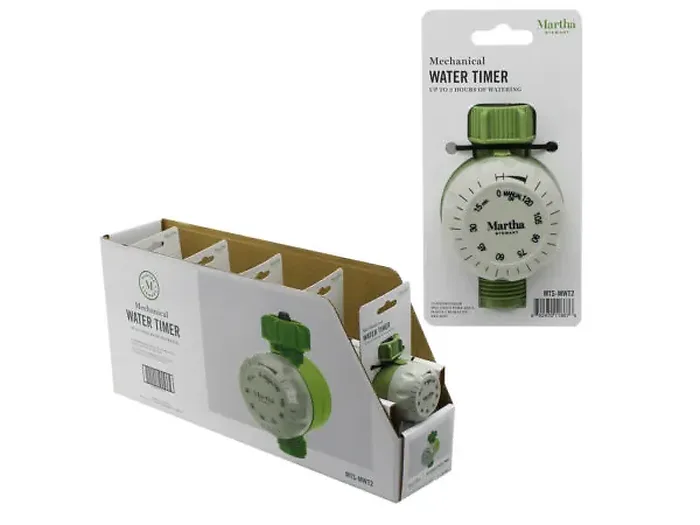 Introducing the Martha Stewart 2-Hour Mechanical Water Timer, your essential gardening companion for effective and efficient watering. This innovative timer allows you to set precise watering intervals and durations, ensuring that your plants receive the ideal moisture they need to flourish.