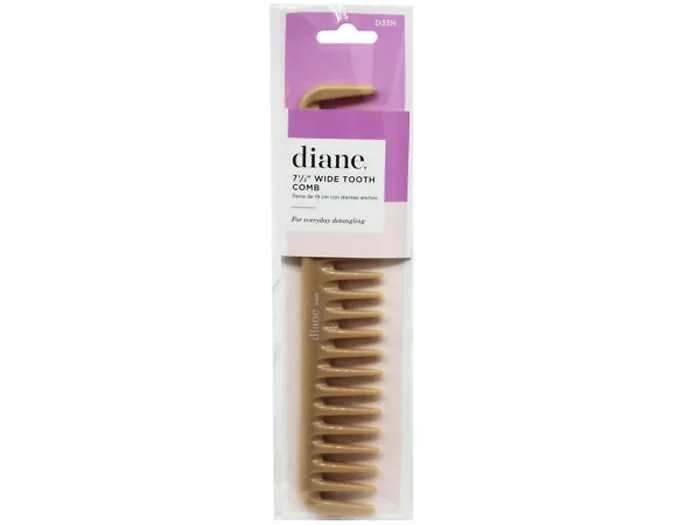 The Diane Wide-Tooth Comb is a high-quality, durable comb expertly crafted with wide-spaced teeth that effortlessly glide through your hair, minimizing breakage and reducing static. Designed to gently detangle and evenly distribute hair products, making it ideal for both wet and dry hair. The wide teeth also facilitate better airflow to the scalp, stimulating the roots and promoting overall hair and scalp health. It's 7 1/2" and comes carded in a hanging poly bag.