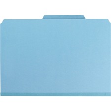 Classification folder functions as the perfect file organizer, complete with tabs on the cover and dividers for easy titling. Durable, classification folders are ideal for keeping important documents in place. Each folder is made of 25 point recycled pressboard with expandable, color-matched Tyvek gussets. Single partition helps create four filing surfaces - each with a 1" size fastener - to maximize your filing opportunities. Each folder expands 2" to hold a thick stack of your important documents.