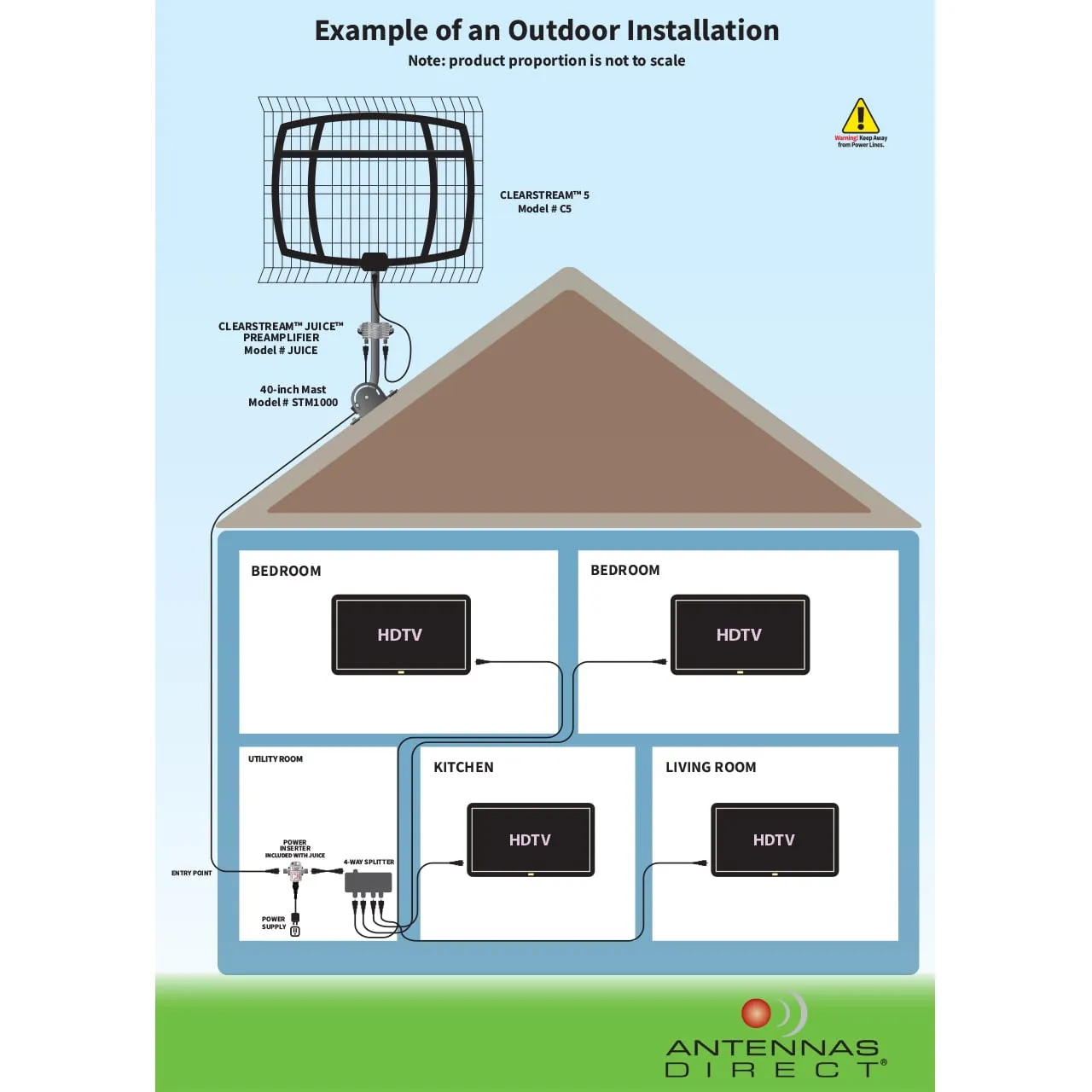 Antennas Direct C4-V-CJM ClearStream 4V Indoor Outdoor TV Antenna, UHF VHF, Multi-Directional, 70+ Mile Range, 4K 8K UHD, NEXTGEN TV - with 20-In. Mast
