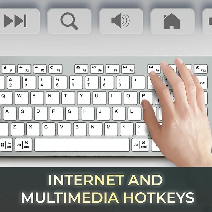 The Adesso Full Sized Keyboard AKB730 is a sleek and modern designed keyboard that has scissor switches and a multi OS layout that also includes a CoPilot Ai hotkey, USBC, USBA, and 3.5mm Aux ports, built to make handling your daily computer tasks easier. The scissor key switches provide a more quiet, tactile and snappy response when typing. The Copilot AI hotkey on your keyboard provides instant access to an advanced AI assistant designed to assist you in various tasks. Simply press the designated hotkey, and Copilot AI will be ready to generate code, provide creative suggestions, or assist you with languagerelated tasks. It's your quick and efficient way to harness the power of AI right at your fingertips. This wired USBC keyboard offers the freedom to use your keyboard with Windows ,Mac Android systems and easily switch between them. Universal Compatibility to connect all the devices without the need for additional drivers or software. The Adesso AKB730 delivers a smooth and responsive typing experience with it s scissor switch technology that requires less key travel distance and less force to press keys making it more comfortable for prolonged typing sessions. The Adesso AKB730 delivers a smooth and responsive typing experiencewith its scissor switch technology that requires less key travel distance and less force to press keys making it more comfortable for prolonged typing sessions. This sleek and modern keyboard is designed with a USBC connection, makingit compatible with a wide range of devices, including laptops/notebooks, tablets, and smart phones. Equipped with a USBC, USBA, 3.5mm Aux ports that offer versatile connectivity. This feature enhances the keyboards functionality by enabling convenient audio and peripherals connectivity.