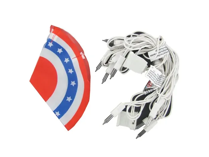 Brighten up your celebrations with our Red, White, and Blue Mini Bunting Light Set. Each set features ten clear lights illuminating vibrant nylon bunting flags in patriotic colors. Designed with dual hook and loop fasteners, these flags easily attach to the light strand, making it simple to enhance your home decor for Memorial Day, the Fourth of July, or any patriotic event.