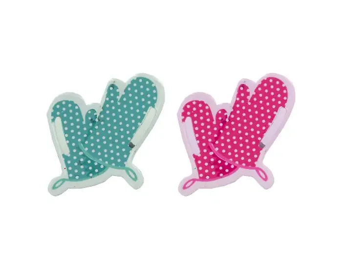 Enhance your crafting projects with our Colorful Oven Mitt Themed Ribbon Brads. This pack includes 24 oven mitt metal brads that are perfect for holding ribbons and adding a delightful touch to your artwork. Each brad can accommodate a ribbon width of up to 3/8", making them versatile for various uses. The set features an assortment of 12 vibrant red and 12 cheerful blue oven mitts, adding fun and functionality to your crafts.