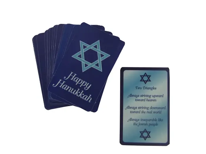 The cards feature the inspiring message: "Two Triangles...Always striving upward toward heaven...Always striving downward toward the real world...Always inseparable like the Jewish people."