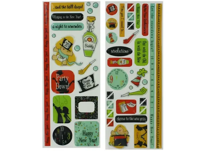 Includes two sheets of vibrant stickers to enhance your New Year celebrations!