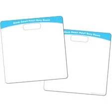Pizza Fractions Smart Poly Busy Board helps children learn their fractions in a fun way by using pizza slices on one side and a colorful fraction bar for easy comparison on the other. Both sides include blank sections for practice and notes. Perfect for reusable learning anywhere, the write-on/wipe-off surface lets you write directly on the board and quickly wipes clean for your next session. Use with dry-erase or water-based markers and washable crayons. No lamination is needed. Heavy-duty cardboard coated with poly material is designed to be long-lasting, easy to clean and water-resistant for many years. Carry easily with the die-cut handle. Durable board includes a black, dry-erase marker (fine point).