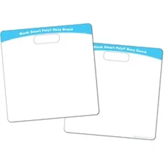 Blank Smart Poly Busy Board gives children an erasable worksurface for interactive play and educational development. Both sides are blank. Perfect for reusable learning anywhere, the write-on/wipe-off surface lets you write directly on pieces and quickly wipes clean for your next session. Use with dry-erase or water-based markers and washable crayons. No lamination is needed. Heavy-duty cardboard coated with poly material is designed to be long-lasting, easy to clean and water-resistant for many years of use. Carry easily with the die-cut handle. Durable board includes a black, dry-erase marker (fine point).