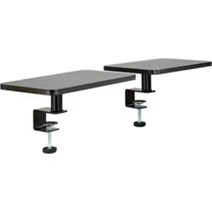 The Allsop Ascend™ Dual Monitor Stands feature two height adjustable platforms that can be mounted and adjusted individually providing maximum flexibility and customization for dual monitor setups. The Ascend stands feature a robust clamp system that is hidden underneath the desk to optimize work space (fits desks up to 2" thick). Each 14" x 9" platform can be adjusted to three height options for best ergonomic positioning (4" , 4.88" and 5.75"). The platforms are the ideal option for monitor stands with traditional base stands (non-VESA) or for raising laptops to the same height as your monitor.
