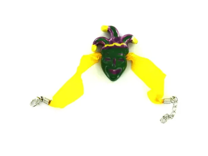 This beautiful 7 1/2" Mardi Gras Adjustable Ceramic Charm Bracelet features a vibrant design perfect for celebrating the festivities. Crafted with an adjustable nylon ribbon, it comes complete with a stunning 1 1/2" ceramic charm, metal chain, and clasp, making it a stylish accessory for any occasion.