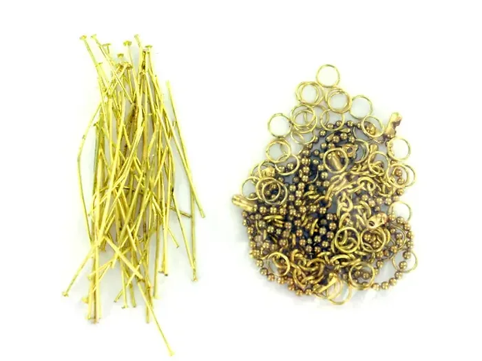 The Goldtone Metal Fan Pull Kit is perfect for creating custom fan pulls. This kit allows you to design 6 unique fan pulls and includes essential accessories such as jumprings, headpins, ball chains, and link chains. (A total of 103 pieces per unit). Please note, beads are not included.