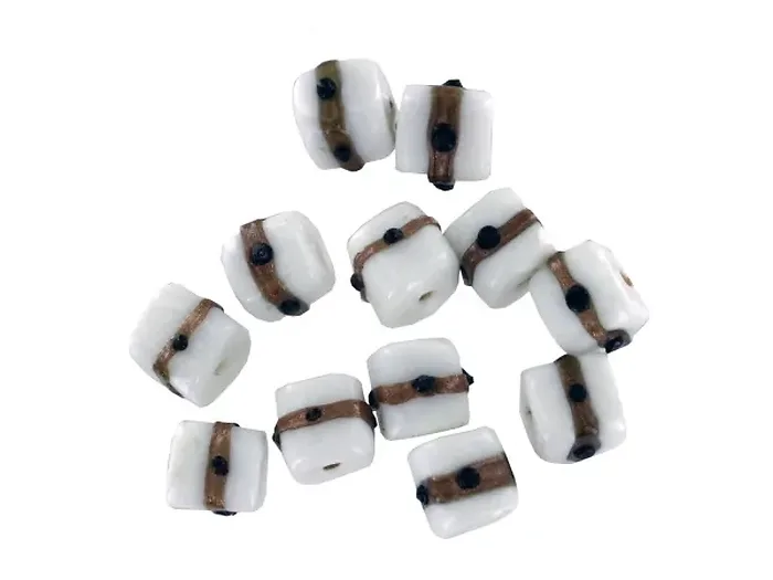 Add a touch of elegance to your jewelry designs with these stunning White & Black Lampwork Cube Glass Beads. Each bead measures 10mm and comes in a set of 12 pieces.