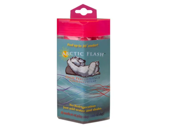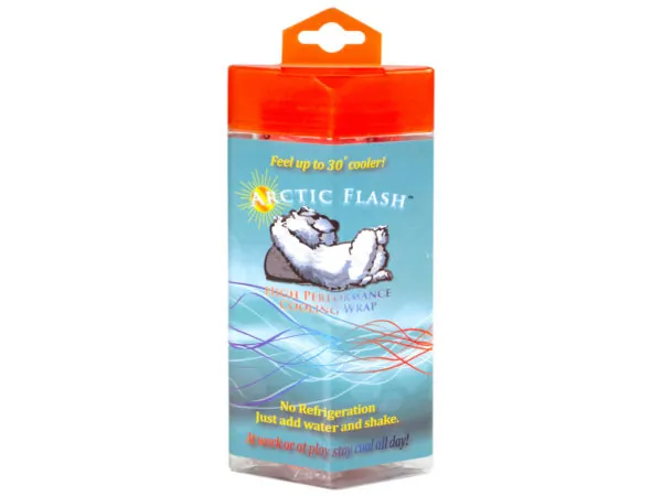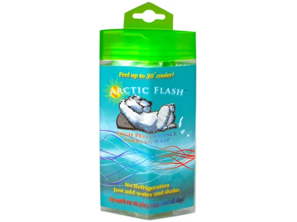 The Blue Arctic Flash Cooling Wrap is your ultimate companion for beating the heat during hot summer days, engaging in physical activities, and managing hot flashes. This innovative cooling wrap delivers a refreshing effect, feeling up to 30 degrees cooler than ambient temperatures. Measuring approximately 31.50" x 6.75", it is designed for ease of use. Simply add water, shake the container to distribute it evenly, and enjoy the cooling sensation. The wrap is machine and hand washable for easy care and comes in a stylish blue color, packaged conveniently in a reusable plastic diamond container.