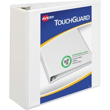 Avery® TouchGuard View 3 Ring Binder - 1 Binder Capacity - Letter - 8 1/2 x 11 Sheet Size - 250 Sheet Capacity - 3 x Slant Ring Fastener(s) - 4 Pocket(s) - Polypropylene - White - Recycled - Pocket, Durable, Antimicrobial, Heavy Duty - 1 Each