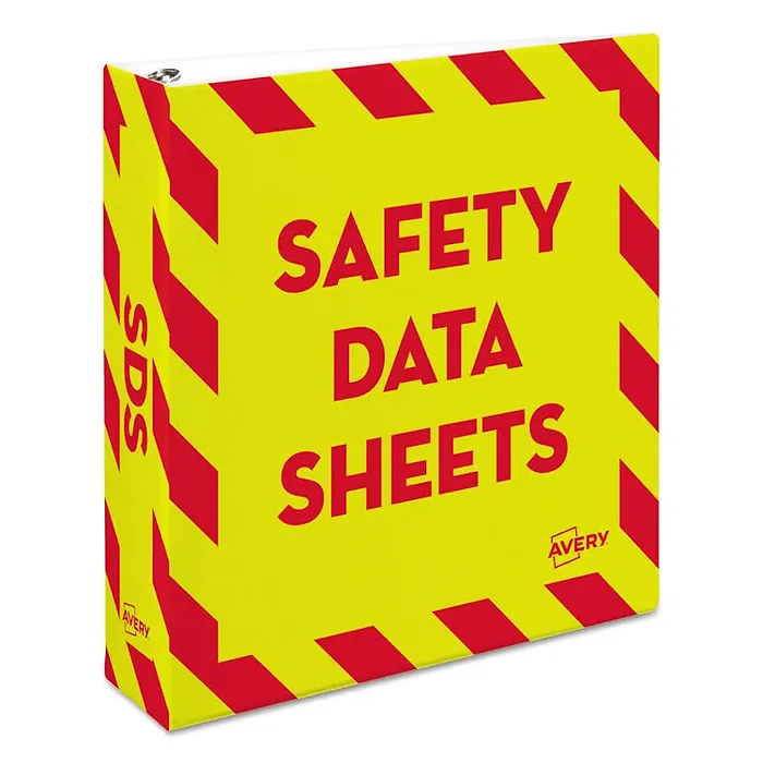 Keep Safety Data Sheets (SDS) secure and accessible with this strong, heavy-duty binder that features thicker front and back panels designed for extended use. Preprinted SDS cover lets employees find safety storage. Wider front and back binder panels fully cover standard dividers and sheet protectors. Pages lie flat with back-mounted rings. The 2" binder holds up to 540 letter-size documents. Interior pockets offer extra storage.