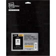 PermaTrack Metallic Asset Tag Labels make it easy to create your own heavy-duty, metallic asset tags; bar-code labels; equipment tags; property tags and nameplates on demand, right from your laser printer. Accurately record and monitor valuable assets such as electronics, equipment, tools, furniture and containers. Labels in glossy metallic silver feature a strong adhesive and durable metallic material that is chemical-resistant, waterproof and abrasion-resistant. Customize with text, graphics, serialized numbers and bar codes using the free, online, Avery Design & Print software with bar-code generator. Print as many asset tags as you need when you need them - avoiding high minimum order quantities and long lead times from custom printing services. Labels are optimized for superior print performance to print smoothly without skewing or jamming. Each letter-size sheet includes 30 labels (3/4" x 2").