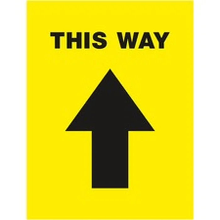 Keep people at a safe distance using these Social Distancing Floor Decals labeled "This Way." Preprinted with an eye-catching black arrow on a yellow background with a semi-glossy finish, these 8-1/2" x 11" floor decals immediately stand out and help direct foot traffic. Built to withstand the constant wear-and-tear of everyday foot traffic, these anti-slip vinyl floor decals are scuff-resistant, water-resistant and UV-coated for additional durability. Removable floor decals stick and stay to multiple indoor surfaces, including carpeted floors, but also peel away cleanly. Removable adhesive also makes it easy to reposition the floor decals so that you can carefully adjust the placement of the vinyl floor decals to make sure that the spacing is just right. Preprinted, social distancing floor decals are perfect for every type of location or business including retail stores, restaurants, hair salons, banks, airports and more. Pack includes five decals.