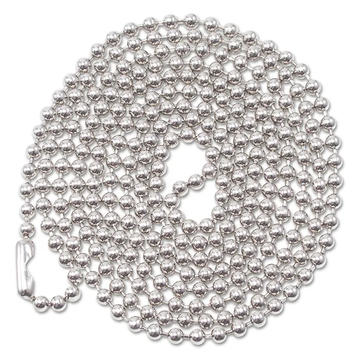 Id Badge Holder Chain, Ball Chain Style, 36" Long, Nickel Plated, 100/box