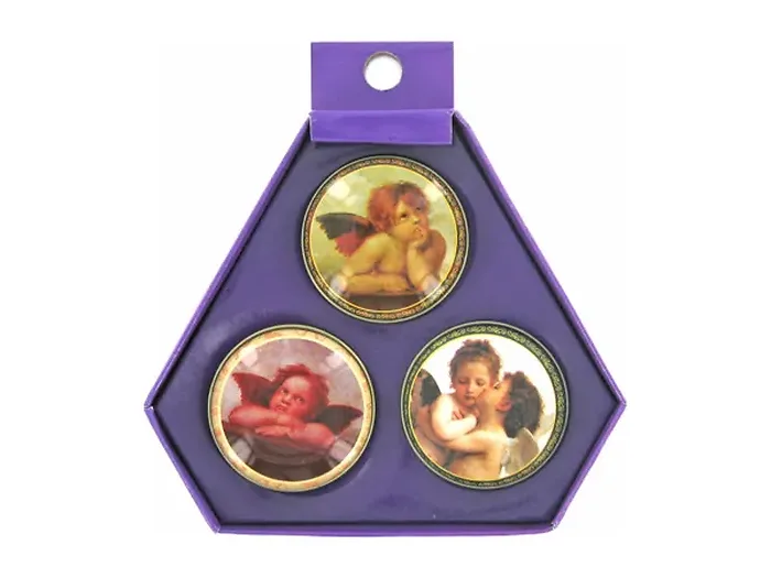 Each pill box measures 1 1/2" in diameter and includes a plastic liner for durability and easy cleaning. This charming set comes with three uniquely designed pill boxes, making it a delightful addition to your healthcare essentials.