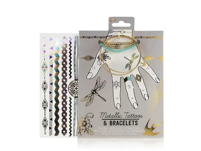 Embrace your inner free spirit with our exclusive set of Trendy Metallic Tattoos and Boho Bracelets. This enchanting collection features an assortment of accessories that will elevate your style.