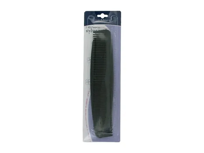 Introducing our Professional All-Purpose Styling Combs Set, designed for both home and salon use. This versatile set includes two sleek black plastic combs, perfect for achieving any hairstyle.