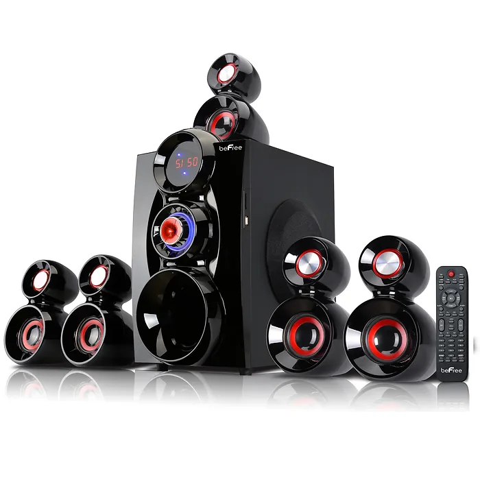 The beFree sound home entertainment speaker system puts high-performance sound for music and movies well within reach. This system brings amazing sound to your stereo or home theater components. This 5.1 surround sound system blends easily with your décor, making it an excellent choice for smaller rooms. Innovative technologies let you hear new details and nuances even in your most-played favorites. The system's five speakers deliver vivid and lifelike music and movie performance. Just three inches, these small speakers faithfully reproduce the clarity and natural sound of a live performance.