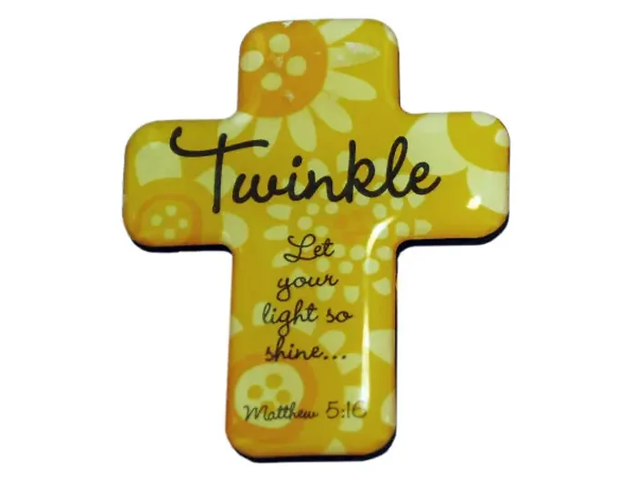 Add a charming touch to your space with our Twinkle Cross Magnets. This set of four beautifully designed cross-shaped magnets will brighten up your fridge or any magnetic surface.