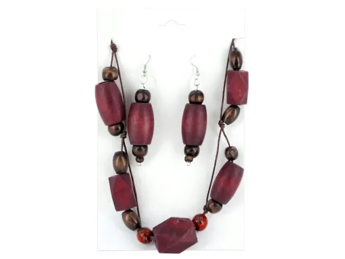 Wooden Beaded Necklace & Earrings Set
