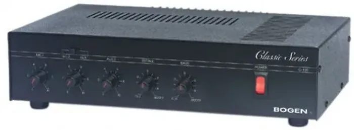 The Bogen 100 Watt Public Address Mixer Amplifier is designed for quality audio mixing and amplification in public address applications. It seamlessly integrates various audio sources, ensuring clear and reliable sound output.