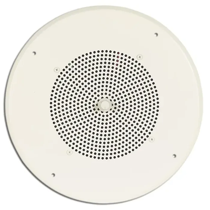 - 8" Cone Ceiling Speaker pre-assembled onto a 13" steel bright white grille- Volume control with knob- 4 Watt capacity- 6 different power taps available (4, 2, 1, 1/2, 1/4, 1/8W)- T725 4-watt transformer- Pre-assembled for faster installation- Works with both 70V and 25V amplifier outputs