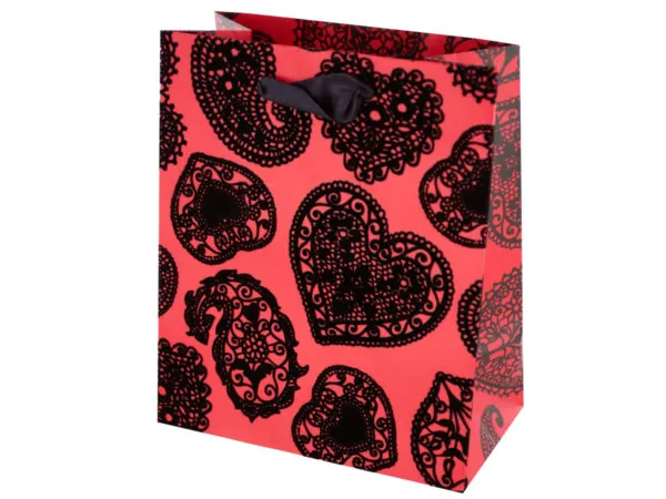 Celebrate love and special moments with our Valentine's Hearts & Swirls Gift Bag. Designed with a beautiful glossy finish, this gift bag showcases an eye-catching glitter hearts and swirls pattern that is perfect for Valentine's Day and other romantic occasions.