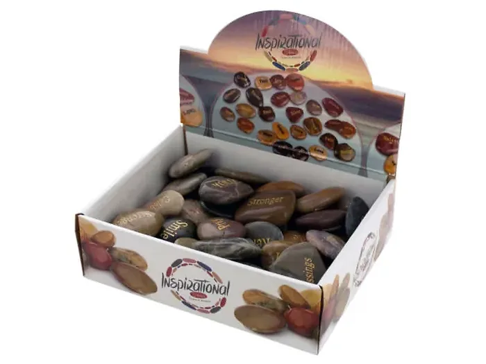Embrace daily positivity with this set of Inspirational Stones. Each natural polished stone is beautifully etched with a motivational word that serves as a reminder of love, hope, and inspiration. These stones can be displayed individually or grouped together for a stunning visual effect. Perfect as thoughtful gifts, each stone conveys an uplifting message. The collection features stones of varying sizes, ranging from approximately 1.25" to 2.75" long, with words such as Inspire, Dream, Balance, Hope, and Faith.