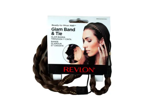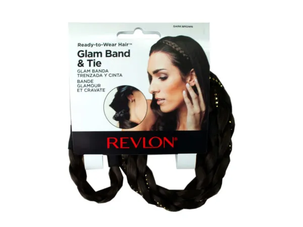 Revlon Dark Blonde Glam Band & Tie features a simple braid with sparkling rhinestones. Use the band as a headband or hair ties — a great addition to your next hair accessories collection. Dress up any ponytail with this embellished hair tie. Keep away from heat sources and styling tool. Glam Band and Tie comes packaged in a 3.75" x 4" hanging header card in a poly bag.