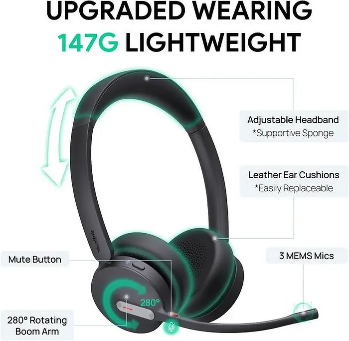 Equipped with both USB-C and USB-A connectivity options, the BH70 headset provides maximum compatibility with various devices, while the comfortable binaural design ensures a long-lasting and pleasant user experience throughout your workday.