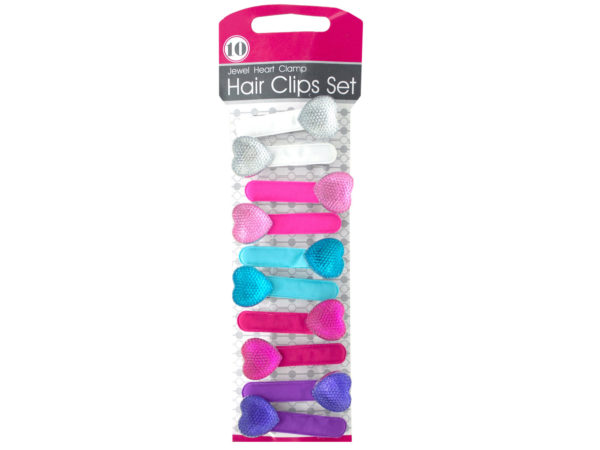 Add a touch of sparkle to your hairstyle with our set of metallic hair clips. This stylish set includes two pairs of small heart clips, each measuring 1/2 inch, and one pair of vibrant purple clips measuring 1 1/2 inches. Designed with plastic teeth to ensure a secure hold, these hair clips are perfect for enhancing any outfit.