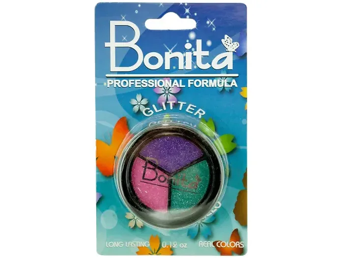This dazzling trio of glitter eyeshadows adds vibrant color and mesmerizing shimmer to elevate your makeup look. Each palette includes 3 stunning shades designed to create eye-catching styles for any occasion. Packaged beautifully on a hanging blister card, this palette is perfect for on-the-go glam!