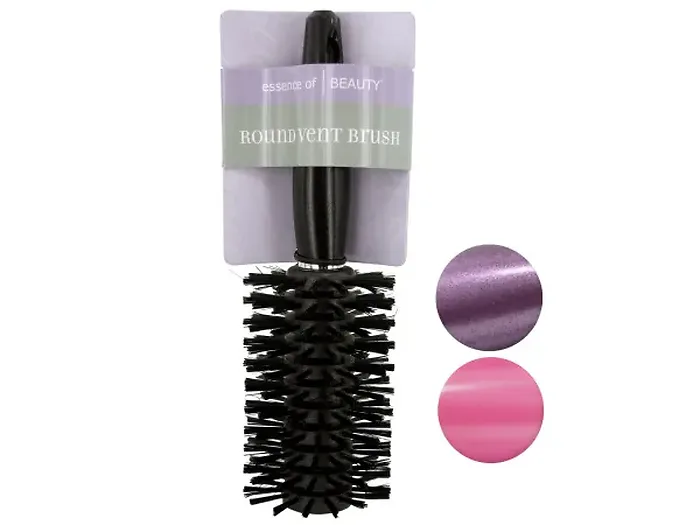 The Versatile Round Vent Brush is an essential tool for achieving salon-quality hair styling at home. Ideal for blow drying and adding volume, this brush features a durable plastic handle designed for comfort and ease of use. Its nylon bristles effectively glide through the hair, detangling and smoothing with every stroke. Available in assorted colors, including black, purple, and pink, this brush is not only functional but also stylish.