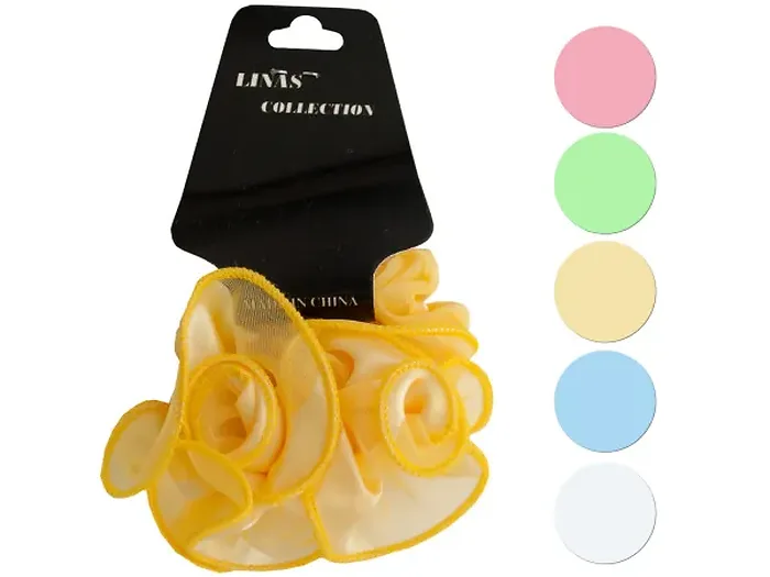 Enhance your hairstyle with the Charming Pastel Chiffon Hair Twister featuring a delicate ruffle detail. This accessory is perfect for all hair types and adds a touch of elegance to any look.