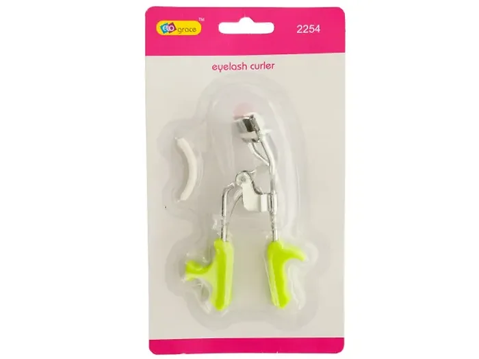Enhance your beauty routine with the Comfort Grip Eyelash Curler. This durable metal curler, designed with ergonomic plastic handles, provides a comfortable grip and flawless curl for your lashes. The set includes an extra curler pad for long-lasting use. Perfect for achieving mesmerizing eyes, this curler is available in a variety of attractive colors and comes neatly packaged in a blister pack.