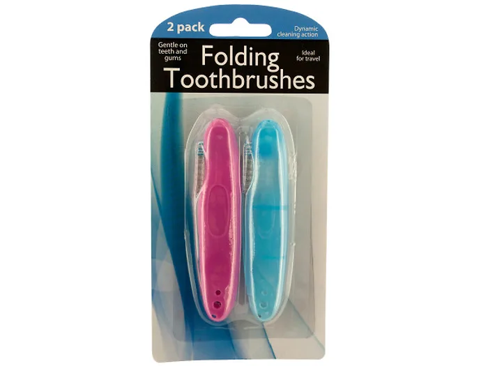 Ideal for travel, this 2-piece Folding Travel Toothbrushes Set is easy-to-use and convenient to carry on any journey. These toothbrushes feature a space-saving folding design and have a dynamic cleaning action that is gentle on teeth and gums. Comes packaged in a blister pack.