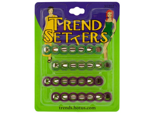 An essential addition to your hair accessory collection, this 8-piece Colored Hair Barrettes Set makes creating unique hairstyles a snap and holds hair securely in place. Barrettes are made of metal with assorted matte colored coatings. Comes packaged in a hanging panel.
